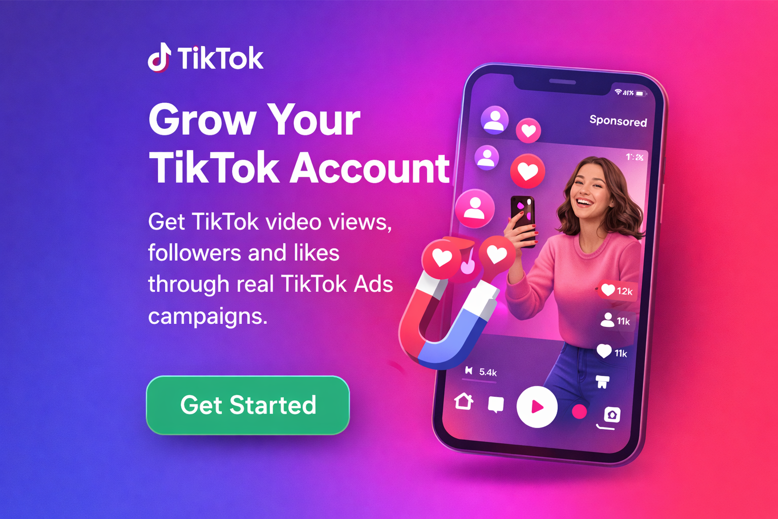We help creators and brands grow on TikTok, YouTube, Instagram, and Facebook using real advertising campaigns through Meta Ads, TikTok Ads, and Google Ads.
